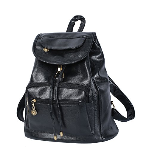 Best Seller! CrazySell Womens Ladies PU Backpack Fashion Schoolbag Shoulder Bag Faux Leather Daily Backpack Women Rucksack Cute and Lovely (Black) Review